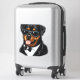 The stick looks amazing. Unfortunately, it would not stick on our suitcase as it was textured. When we found a non-textured (smooth) suitcase, the sticker stuck and looks great. The printing looked awesome.