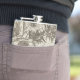 The flask itself is fine. It’s a cheap flask, obviously bought in bulk, however am prepared to overlook that. Given that it is a personalized item, I would have liked to have seen gift boxing instead of the generic packaging. Terrible printing, and/or quality. It’s a cheap, tacky vinyl. It is not cut straight and is also applied in a way that it is overhanging the bottom, causing the glue to catch on items and it will eventually roll and tear, damaging the wrap.