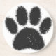 A black dog paw print cartoon style. Design with distressed effect applied to image. Product and gift idea for people that love dogs.