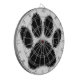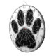 A black dog paw print cartoon style. Design with distressed effect applied to image. Product and gift idea for people that love dogs.