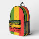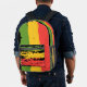This Rasta/Reggae backpack designed to fit your style. It features a graphic Rasta crest on the front pocket and rough, rugged red, gold, and green Rasta stripes on this design for a unique appearance. The perfect gift for Back-To-School, Christmas, or a winter trip to the Caribbean!