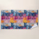 Rough Brushstroke Print Beach Towel - The design incorporates a distressed and textured look with various blocks and brushstrokes of colour, including vibrant shades of blue, orange, yellow, pink, and purple. Decorative contemporary abstract art style.