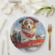 Rough Collie Dog in Sledge Let it Snow Christmas Paper Plate