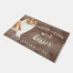 Funny beware of the wet kisser" Rough Collie Dog door mat set on a rustic faux background. Visit our shop to view a large assortment of dog breads