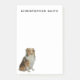 Image of a cute rough collie type breed dog in the lower left hand corner set on solid white. Personalise with your name or message in black uppercase minimalist font.