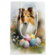 Rough Collie Dog with Easter Eggs Holiday Medium Gift Bag