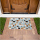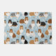 Cute Rough Collie dogs sit and stand and rollover with sable, tri-colour, merle and white coats with scattered dog bones and pawprints pattern.