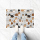 Cute Rough Collie dogs sit and stand and rollover with sable, tri-colour, merle and white coats with scattered dog bones and pawprints pattern.