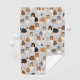 Cute Rough Collie dogs sit and stand and rollover with sable, tri-colour, merle and white coats with scattered dog bones and pawprints pattern.