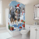 Rough Collie Running in Snow with Christmas Hat Shower Curtain