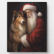 Rough Collie With Santa Claus Festive Christmas Plaque