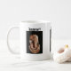 Humourous sculpted mask on mug, with sayng "Rough day? Tough night?