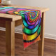 Round and Psychedelic Colourful Modern Fractal Art Long Table Runner