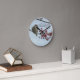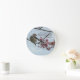 Round wall clock featuring the bible verse Matt 10:29 on a light blue background with a picture of a bird on a flowering branch. Makes a perfect gift for a Christian friend.