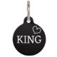 Distinctive and simple round black ID pet tag, with home address on the backside, available. Nothing fancy but stands out, without a doubt.