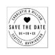 Round Modern Bold Save the Date Self Inking Rubber Stamp featuring the words "Save the Date" in the centre with date in bold below it, a heart graphic and a double round border for the couple's names and location between it in bold.