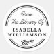 Round Botanical From The Library of Bookplate Sticker. This round book sticker features a "From The Library Of" in script font with your name in serif typography and a botanical leaf element below.