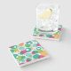 The coasters are gorgeous, a quality feel and heavy weight. They look like a precious archeological find. A rustic stone juxtaposed with a modern floral black and white print. I like the way the print goes slightly imperfect on the cut stone edges giving them a kind-of natural beauty.