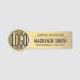 **Please note that the background is printed to look metallic, but the product is not made of metal and is not engraved.** Represent your business in style by supplying staff with modern and professional custom round logo rectangular plastic name tags, available with your choice of pin or magnetic backing. Fonts, colours and logo transparency are simple to adjust using the Zazzle design tool. The black and gold design features a faux metallic foil background, your logo and 3 lines of text for employee's first and last name, job position, company, or welcome greeting. Suitable for small businesses to large corporations, these identification badges provide a classic way to present corporate branding, and adds an elegant touch to standard uniforms.