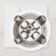 Gather your community with this modern, stylish custom round invitation for a Fellowship Dinner. The front is clean and minimalist, featuring a simple, light gray cross and all key details: Dress Code: Casual, October 20th at 6:00 PM, and RSVP information. The elegant reverse side showcases a contemporary overhead image of a chic marble dinner table set for four, surrounded by earthy-toned chairs. The overall aesthetic is sophisticated, perfect for a church community meal or special gathering. This unique circular design ensures your event—a delicious meal prepared by your community—will be remembered.