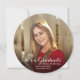 Round circle shaped graduation announcement with pretty white script text and some black shading to create a special effect shadow on your senior picture. Custom Printed graduation announcement, Photo overlay greeting card for girls or guys. Shading automatically added for a complete modern photo card. Add your party or open house details to the back