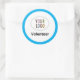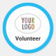 Personalise these round volunteer stickers with your logo, volunteer title, or other custom text. This template has a white background with a light blue border that can be customised to different colours. These are professional scratch resistant stickers printed on acid-free paper. Available in a glossy or matte finish in size 3 inch and 1.5 inch. Low minimum order quantity and no setup fee.