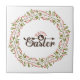 Round Colourful Wreath With Brown Bunny Ceramic Tile