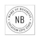 A modern professional custom branded sticker label design for your business features your business initials framed by the name of the company with location city and state. Other wording such as a slogan or website could also be included instead of the location.