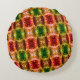 Round drawing generate red, green, and gold shapes cushion