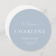 Round Dusty Blue Wedding Menu | Personalized Table