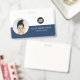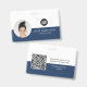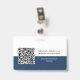 Easily personalise this Custom Horizontal Business Minimalist Employee Name Badge with Photo, Scan Qr Code or Scan Bar Code and business logo. A simple business design with round photo, in navy blue and white colours fully customisable in front and back sizes, sans-serif basic and modern fonts and a professional and clear look. Avaiable with lanyard, metal clip or with retractable. No minimum order.
