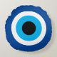 Round Evil Eye throw pillow. Blue mati Greek / Turkish symbol for protection and good luck. Double sided print cushion.