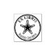 An Ex Libris rubber stamp design in a bold round style with an outlined star motif.