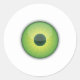 The shape of the sticker is a round circle with the iris of the eye directly in the centre of the eyeball.