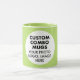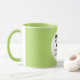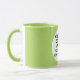 Round LIME GREEN siongle image frame custom Combo Mug for photo or logo, 11 oz., 3.2" diameter x 3.8" high, with LIME GREEN background single image frame (one central customizable design area) providing maximum coverage of the mug in LIME GREEN. See store for more templated font options. The background color has been chosen to closely resemble the combo mug inside and handle color but may not match exactly, due to the difference between printing and enamel tones.