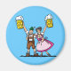 Quality Fridge Magnet with an original german Design. A happy BEER FESTIVAL couple in Lederhosen and Dirndl outfit with beer steins. Design by Frank Ramspott, Munich, Germany.