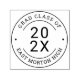 A modern custom self-inking rubber stamp design that features the current graduation year framed by "Grad Class of" and the school name. Personalise with the class graduation year, school name, or student name. Classic dots accent the round frame.