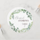 Floral design featuring watercolor greenery and eucalyptus foliage. This guest place card is perfect for a rustic or boho-themed wedding or other special event. This template is perfect for creating personalised round champagne table cards.