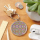 Round keychain featuring intricate floral patterns