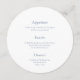 Keep your wedding table chic and simple with this minimalist round menu card in dusty blue. Featuring a clean three-course layout, it’s the perfect modern touch for elegant, coastal, or romantic weddings. Fully customisable with your own menu.
