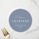 Keep your wedding table chic and simple with this minimalist round menu card in dusty blue. Featuring a clean three-course layout, it’s the perfect modern touch for elegant, coastal, or romantic weddings. Fully customisable with your own menu.