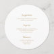 Keep your wedding table chic and simple with this minimalist round menu card. Featuring a clean three-course layout, it’s the perfect modern touch for elegant, coastal, or romantic weddings. Fully customisable with your own menu.
