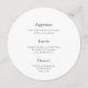 Keep your wedding table chic and simple with this minimalist round menu card. Featuring a clean three-course layout, it’s the perfect modern touch for elegant, coastal, or romantic weddings. Fully customisable with your own menu.