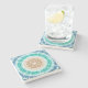 Round Ocean Waves Teal and Turquoise Mandala Stone Coaster
