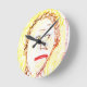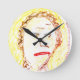 ROUND WALL CLOCK WITH AN OUTSIDER ART STRANGE FAUVISTIC WOMAN'S FACE.