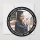 Invite friends and family to your high school or college graduation party with unique round black and white custom photo invitations. Picture and text are simple to customise. (IMAGE PLACEMENT TIP: An easy way to centre a photo exactly how you want is to crop it before uploading to the Zazzle website.) This card is presented as a graduation open house invitation, but can easily be changed to any type of event. If just an announcement card is preferred, simply change or delete the text on back. Design features a dark grey and white border, stylish modern typography, hand written style script calligraphy, and 1 photo of the graduate, such as a senior pictures or image from the commencement ceremony. This elegant flat card is a stylish and chic way to begin your special day celebration.