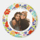 Celebrate a favourite moment with friends with this round photograph magnet and whimsical, retro coloured painterly wild flower pattern frame with editable text to memorialise a special event or person.