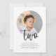 A modern second Birthday Invitation with a round photo and the word 'two' in a calligraphy style font, perfect for your little one's 2nd Birthday party!
