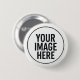 This round button features a clean and bold text layout designed to clearly display uploaded images, logos, or photos. The simple circular format ensures strong visibility, making it suitable for everyday use, events, branding, or identification purposes.