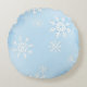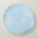 Round Pillow with White Snowflakes on Blue Backgr